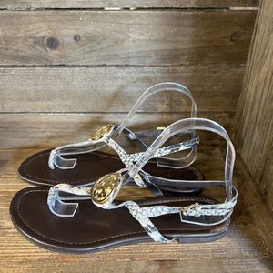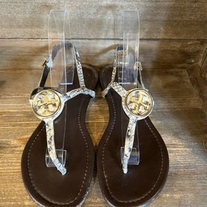 Womens Tory Burch Snakeskin Print T-Strap Thong Sandals Size 8.5 M EUC