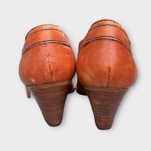 Leather upper, Wood heel, Manmade sole