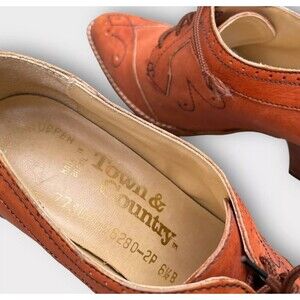 These vintage Town and Country broques shoes are a perfect addition to any fashion-forward woman's wardrobe. With a classic pointed toe and a heel height that will elongate your legs, these shoes are a must-have. The unique style is perfect for those who want to stand out from the crowd and make a statement.