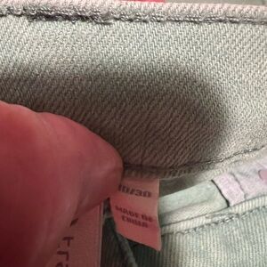 Chic high waist shorts by Trac. Features a mint green hue. Button-up front with frayed hem. Ideal for casual wear.