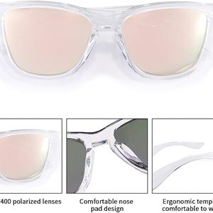 HIGH QUALITY MATERIALS】:These clear rose gold tint polarized women’s sunglasses are made of premium plastic and reinforced metal hinges. Perfect lightweight frame design combined with one-piece nose pads, all the details make these sunglasses become durable enough for a long time using.
