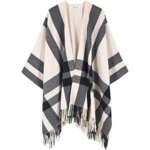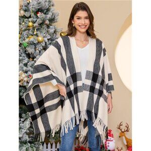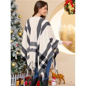 Women's Travel Plaid Shawl Wrap Open Front Poncho Cape for Fall Winter