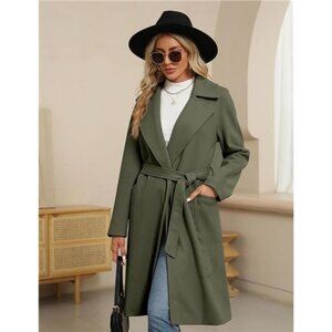 Women's Trench Coat Long Jacket Outerwear Green