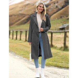 Women's Trench Coats Double-Breasted Long Coat with Belt