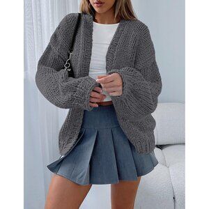 Womens Trendy Cardigan Sweaters Dark Grey Long Sleeve Chunky Knit Outfits