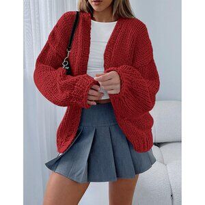 Womens Trendy Cardigan Sweaters Jujube Red Long Sleeve Chunky Knit Outfits