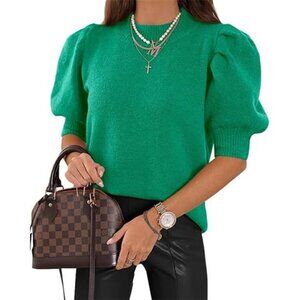 Women's Trendy Crew Neck Puff Short Sleeve Sweater Tops for Spring and Summer