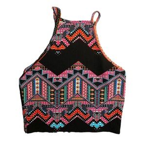 Women’s Tribal Colorful Crop Top-FITS LIKE LARGE