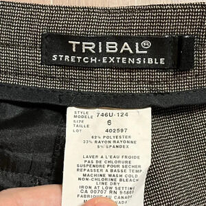 Introducing these stylish Women’s Tribal Pants in Size 6. Crafted from 62% polyester, 33% rayon, and 5% spandex, they offer both comfort and style. These pants are in good condition, perfect for any occasion. See included pictures for measurements.