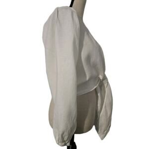 * Women's Tribe Kelley Byron Bell Sleeve Linen Top Tie Front Eggshell White Sz XS