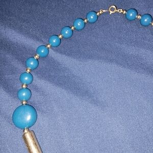 Womens Trifari 18" Teal Green and Gold Tone Beaded Statement Necklace