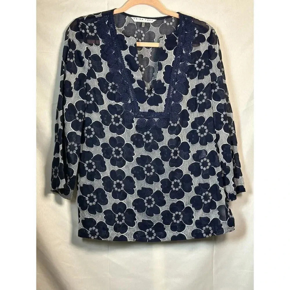 Womens Trina Turk Sheer V Neck Floral Top Size Xs