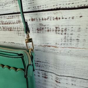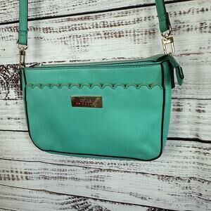 Womens Trina Turk Turquoise Scalloped Edge Small Zip Top Crossbody Boho Purse