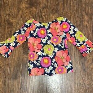 Womens Trina Turk multicolored floral 3/4 sleeved blouse 100% cotton preppy