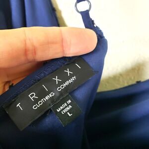 Women's Trixxi Clothing Navy Blue Mini Tiered V-neck Strap Dress Size Large