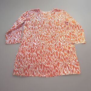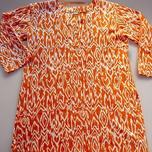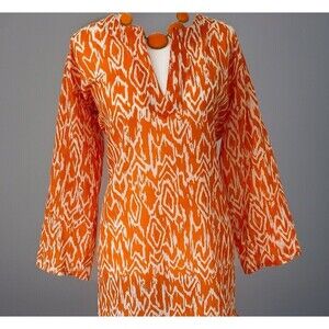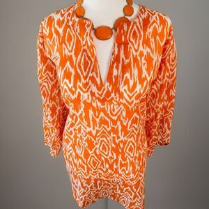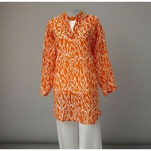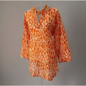 Women’s Tropical Orange + White Patterned Tunic, Light Tissue Cotton Size: L