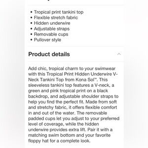 Women's Tropical Print Underwire V-Neck Tankini Top- Kona Sol™ Multi M