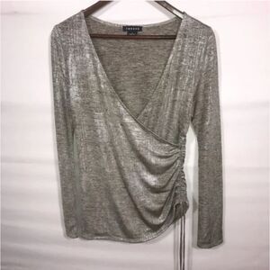 Women's Trouve Metallic Silver Gold Long Sleeve Wrap Top