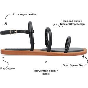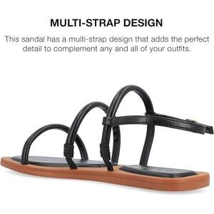 The Karrio sandal from Journee Collection will have you walking around, leaving heads turning and compliments pouring. Their luxe vegan leather, multi-strap design, buckle entry, open soft square toe, and tonal cushioned insole will keep your feet in.