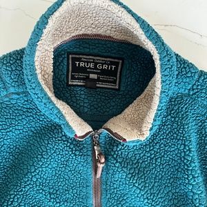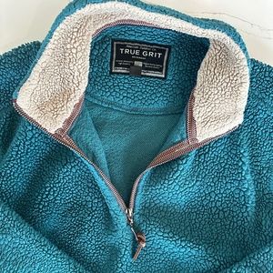 Womens True Grit Quarter Zip Sherpa Forrest Green Pullover, Medium