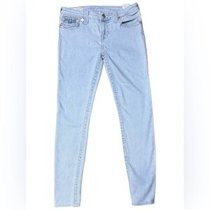 Womens True Religion Jeans Halle Light Blue Denim with Pink Stitching Size 28