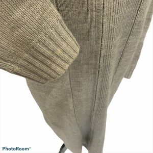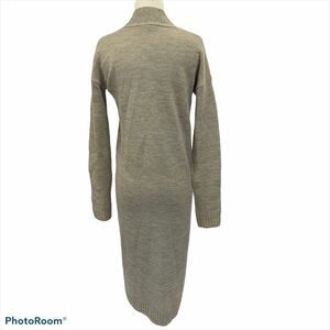 Extra small women’s long ankle length sweater. True religion. Zipper front. Light Gray. 70% acrylic 30% wool. Hand wash. Pre-owned. Slight pilling in some areas. A raised thread in the front. The seams have areas that look to be stretched, but it is just the way the sweater is made. I have included pictures to try to show what I mean. I tried finding flaws but there may be more that I missed. It’s very hard to tell with this kind of material. Please see pictures for details.