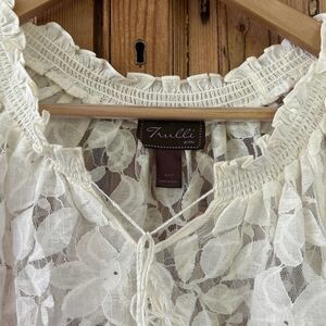 Women's Trulli Petite XXSP Cream Ivory Lace Blouse Sheer Short Sleeve