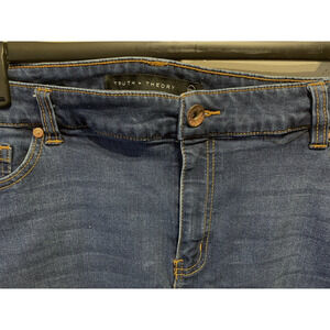 The Truth + Theory Dark Blue Cotton Blend Denim Stretch Shorts are in Excellent Condition.