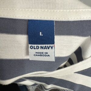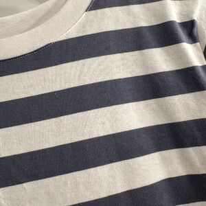 Vintage Crew-Neck Mini T-Shirt Dress, NWOT, white with charcoal stripes(looks like a blue/grey)