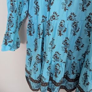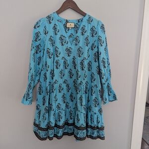 Women's Tuckernuck XS Kenso Turquoise Dress Cotton Block Print