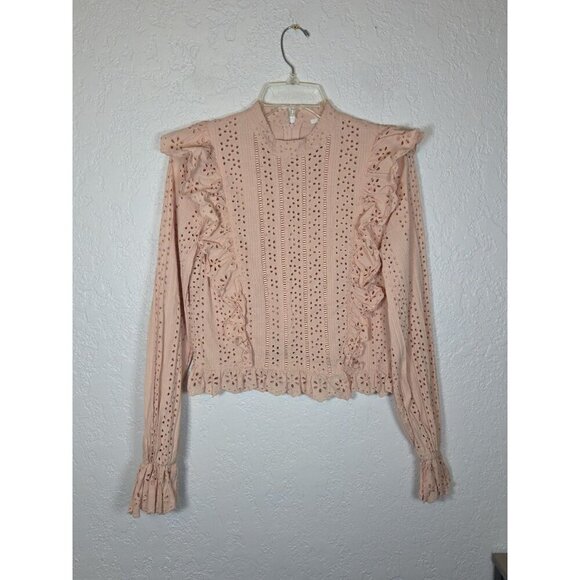 Women's Tularosa Blush Pink Eyelet Ruffle Long Sleeve 100% Cotton Small
