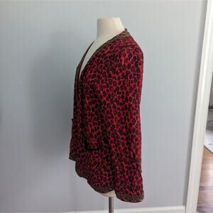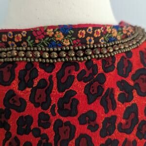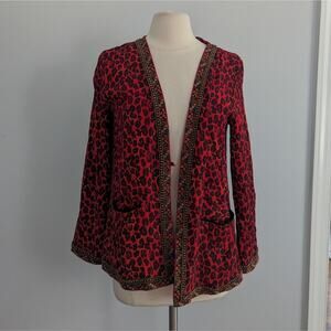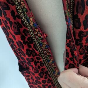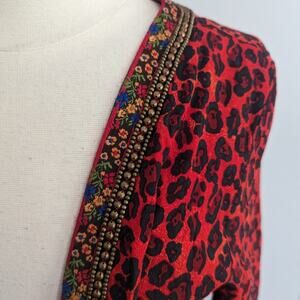 Women's Tulle & Batiste Red Black Leopard Cardigan Beaded Topper Small Bohemian