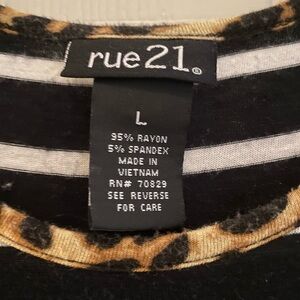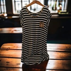 This tunic has animal print detail and high low design for back end coverage. No rips or stains. Please see all photos as part of the description.