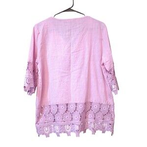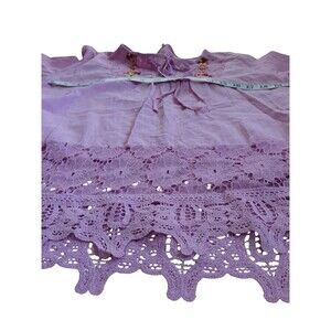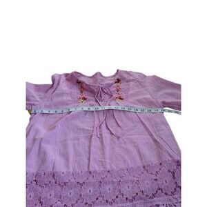 Women's Tunic Front Tie Lite Lavender Crochet Lace Embroidered Top Sz Sm Peasant