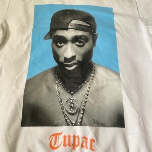 Women’s Tupac Printed Crewneck Sweatshirt 2Pac Rap Hiphop White and Blue Size S