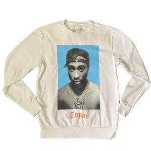 Women’s Tupac Screen Printed Crewneck Sweatshirt 2Pac Rap Hiphop White and Blue Size S