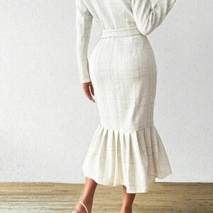 Women's Turn-Down Collar Long Sleeve Waistband Elegant Dress