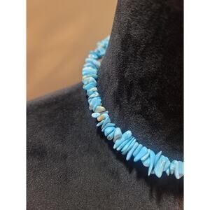 Women's Turquoise Chip Beaded Necklace With Magnetic Clasp Handmade Jewelry