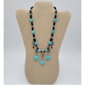 Womens Turquoise Necklace 18" Black Silver Beaded Collar Statement‎ Jewlery