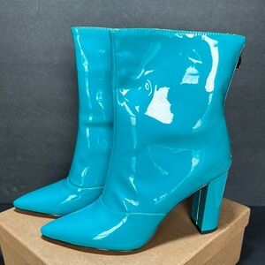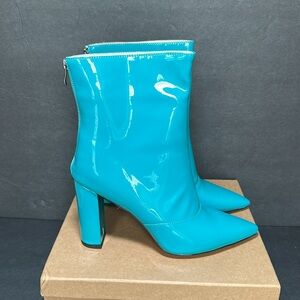 Step out in style with these vibrant turquoise patent leather ankle boots. Perfect for adding a pop of color to any outfit.