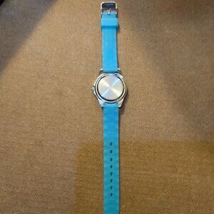Womens Turquoise Silicone Analog Wristwatch With Silver-Tone Bezel