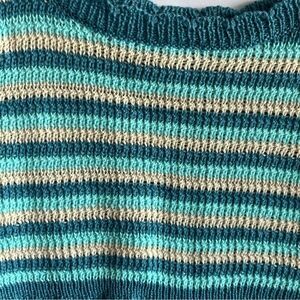 Size Medium Blue Teal Aqua Tan Stripes Tank Spring Summer Hippie Beach Boho Festival