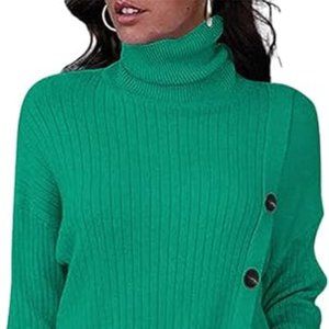 Feature: Turtle Neck, Fit Style, Long Sleeve, Simple Design, Looks Casual and Chic. Button Decoration.