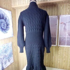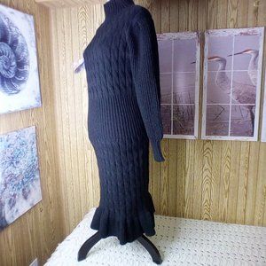 Women's Turtleneck Ribbed Elbow Long Sleeve Knit Sweater Dress