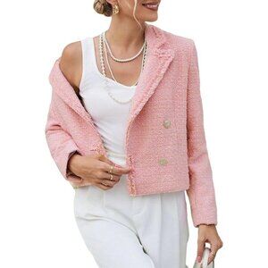 Women's Tweed Blazer Elegant Double-Breasted Open Front Jacket Pockets