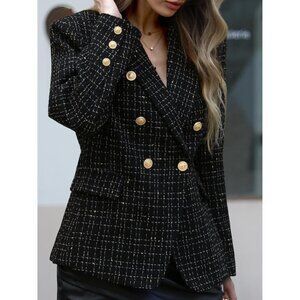 Women's Tweed Blazers Long Sleeve Double Breasted Jackets Open Front Work Suits