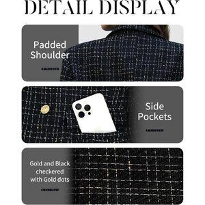 Luxurious Texture:This Tweed Blazer, made of checkered polyester fabric, offers a sharp, upscale look. It's soft, comfortable, and fits well while maintaining a stylish shape