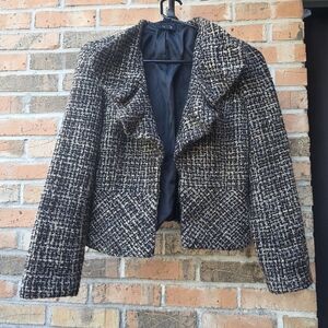 Elevate your style with this chic women's tweed jacket. Perfect for any occasion, this jacket features a classic black and cream pattern. Its sophisticated design ensures you stand out in any crowd.