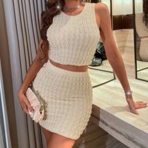 Women’s Two Piece Summer Cream Body Con Crop Tank and Skirt Set