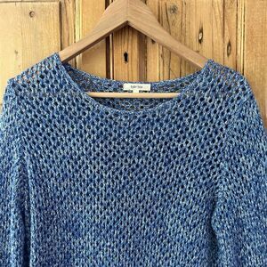 Women's Tyler Boe 8 Blue White Open Knit Fringe Sleeve Sweater